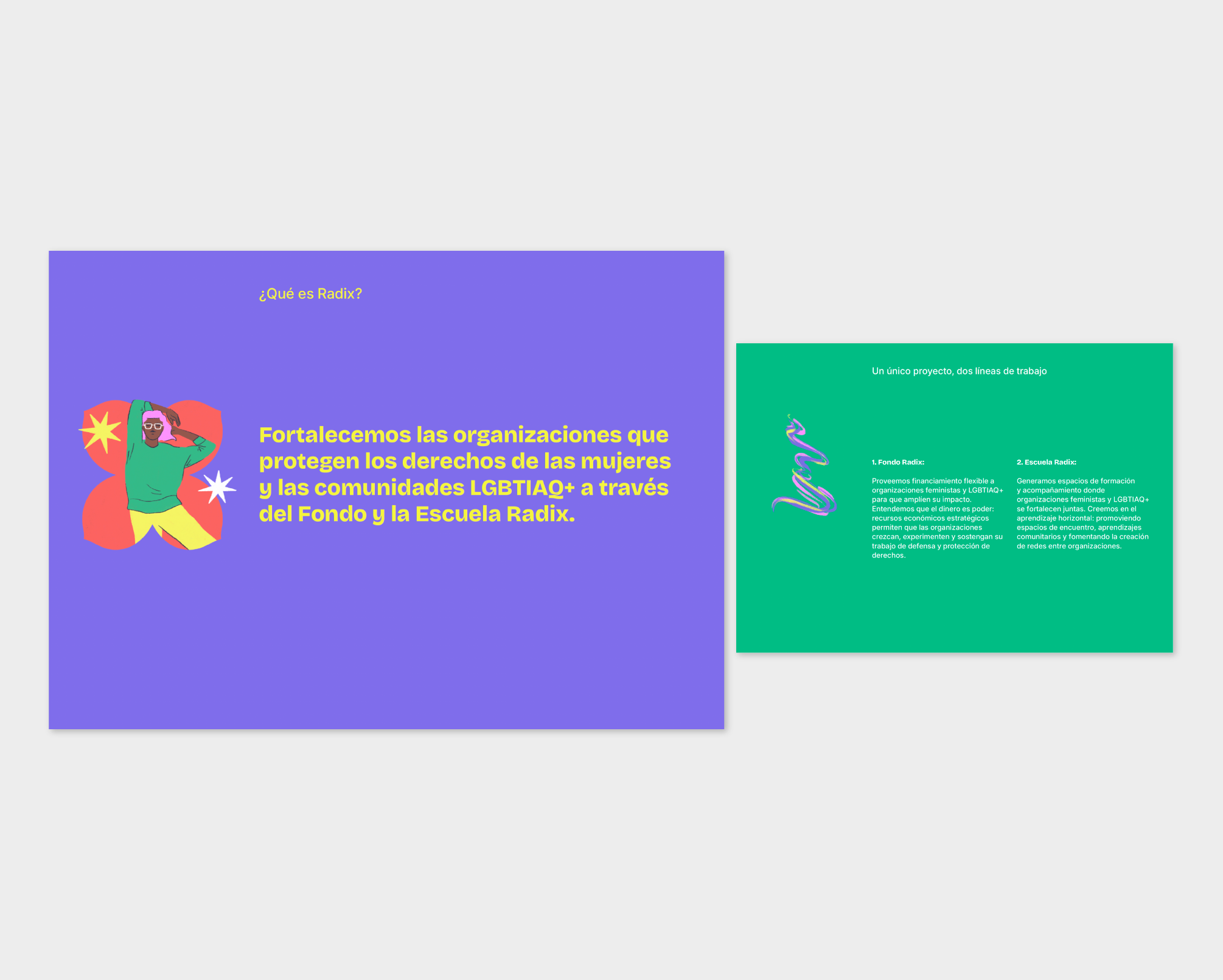 Radix és un projecte de Calala i Otro Tiempo i neix de la necessitat de reforçar organitzacions feministes i LGTBIQA+ que operen en primera línia, sovint amb pocs recursos i sota pressió política creixent. El projecte requeria una comunicació estratègica, coherent i política, capaç d’unir actors diversos, explicar el seu sentit transformador i generar legitimitat pública.
