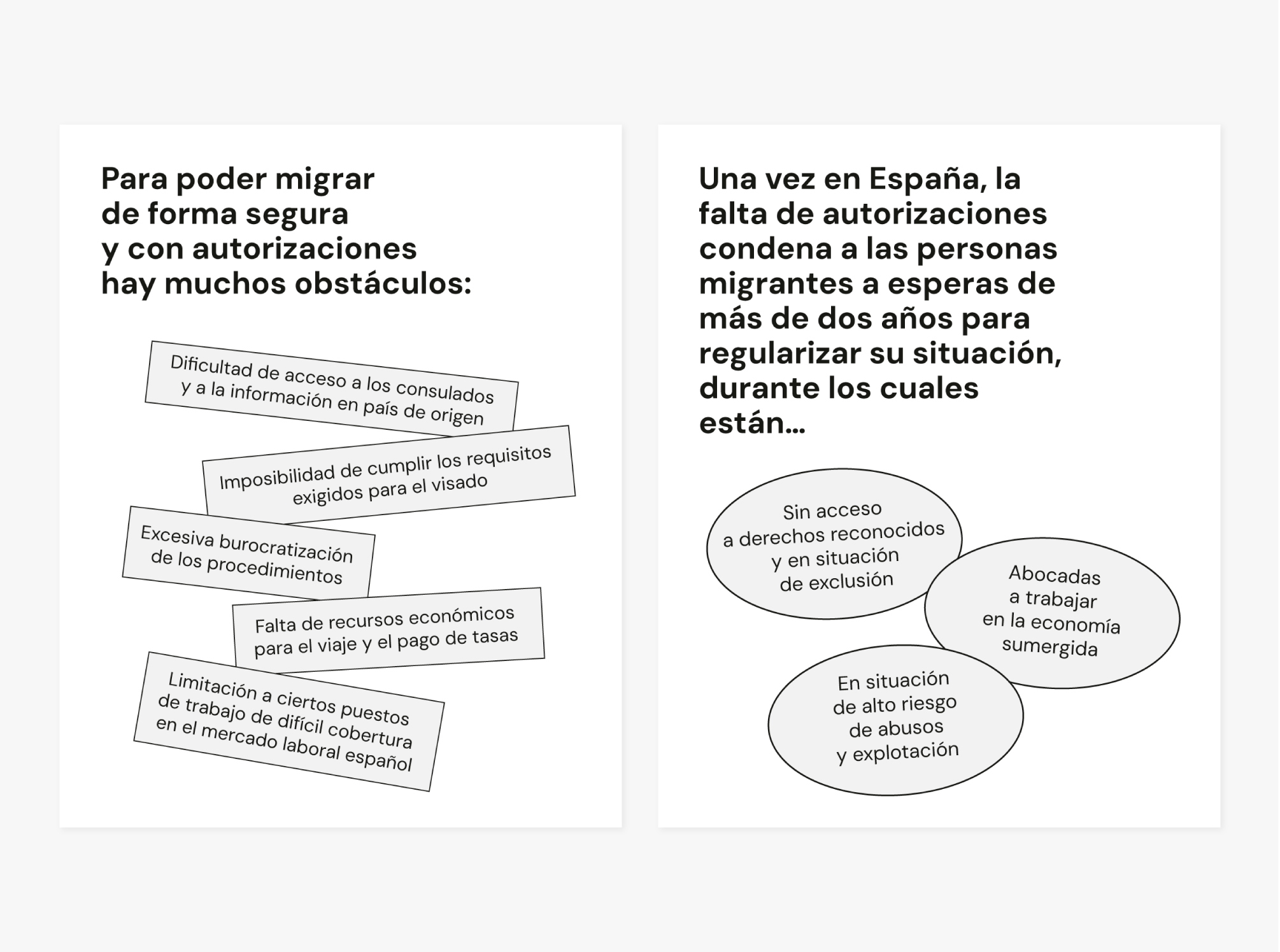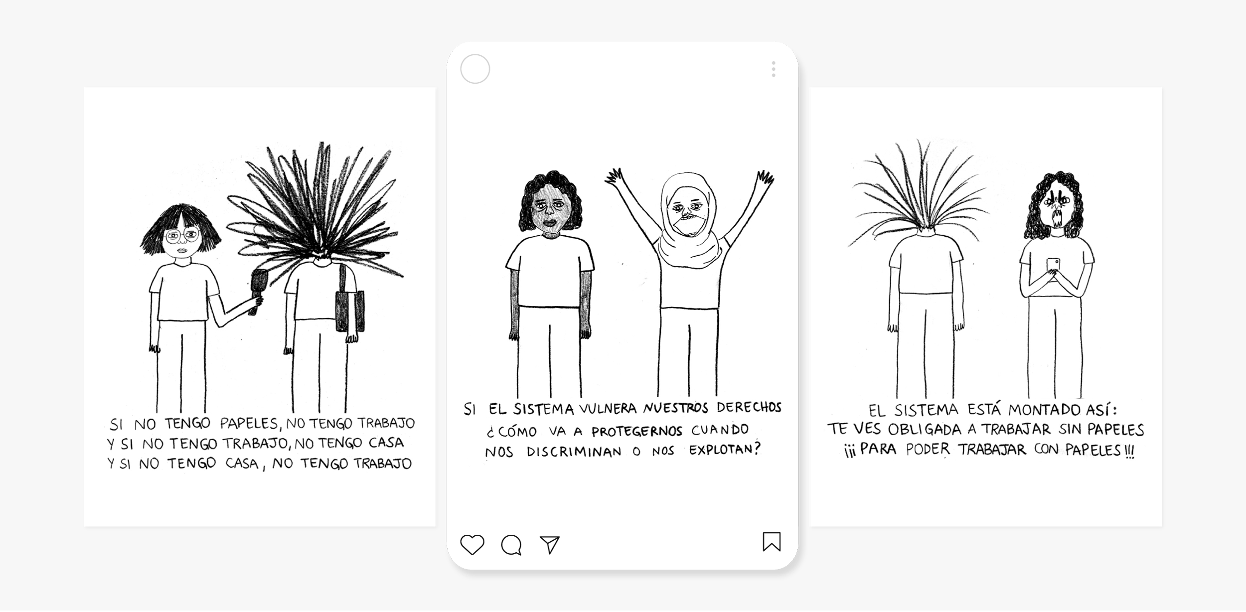 Procés participatiu per dissenyar un marc estratègic de comunicació + concepte, desenvolupament i coordinació d'una campanya transmèdia d'àmbit estatal. En col·laboració amb Rocío Quillahuaman, construïm un relat crític envers el sistema legal migratori espanyol i europeu.